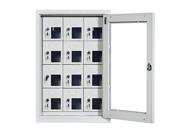 手機(jī)保密柜正面為對(duì)開金屬邊框玻璃大門,便于觀察柜內(nèi)情況,堅(jiān)固透亮,美觀大方。