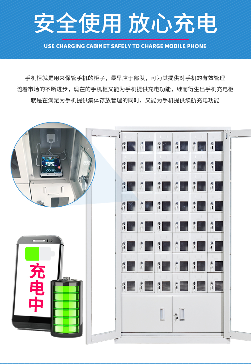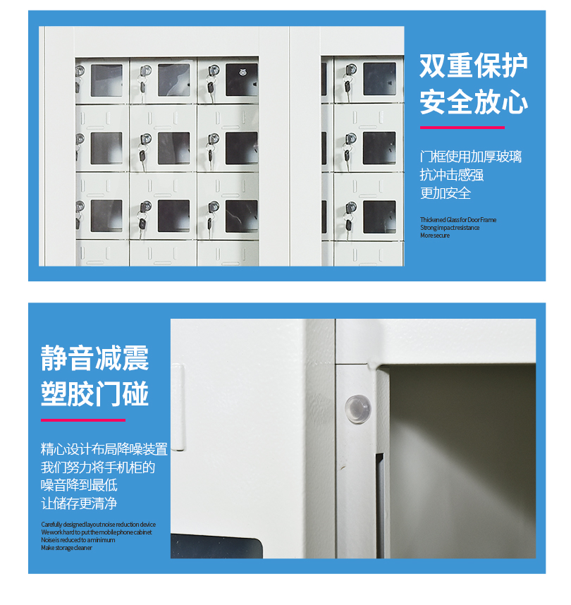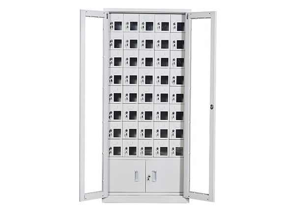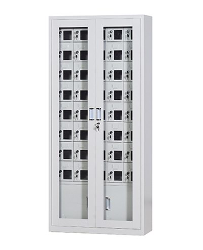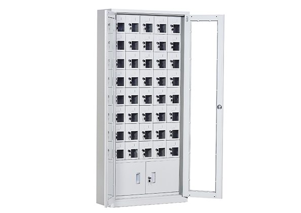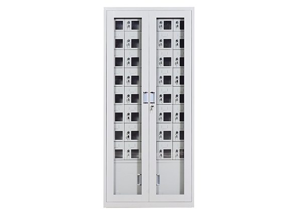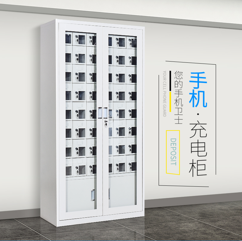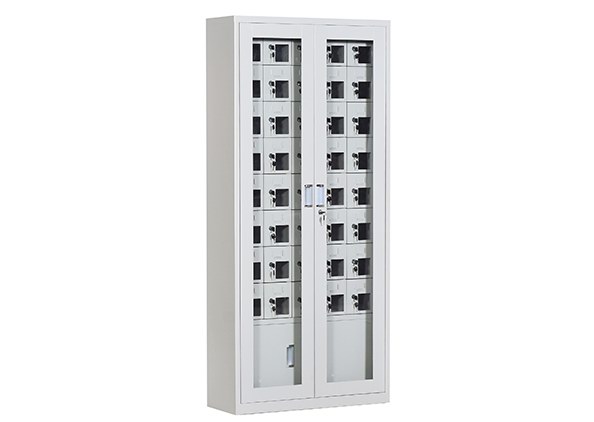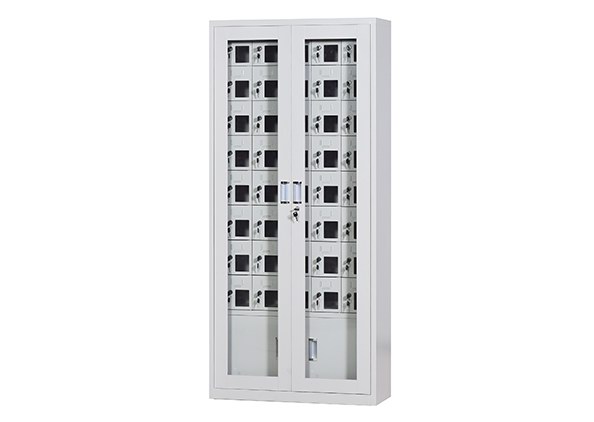 手機(jī)保密柜正面為對(duì)開(kāi)金屬邊框玻璃大門(mén),便于觀察柜內(nèi)情況,堅(jiān)固透亮,美觀大方。
